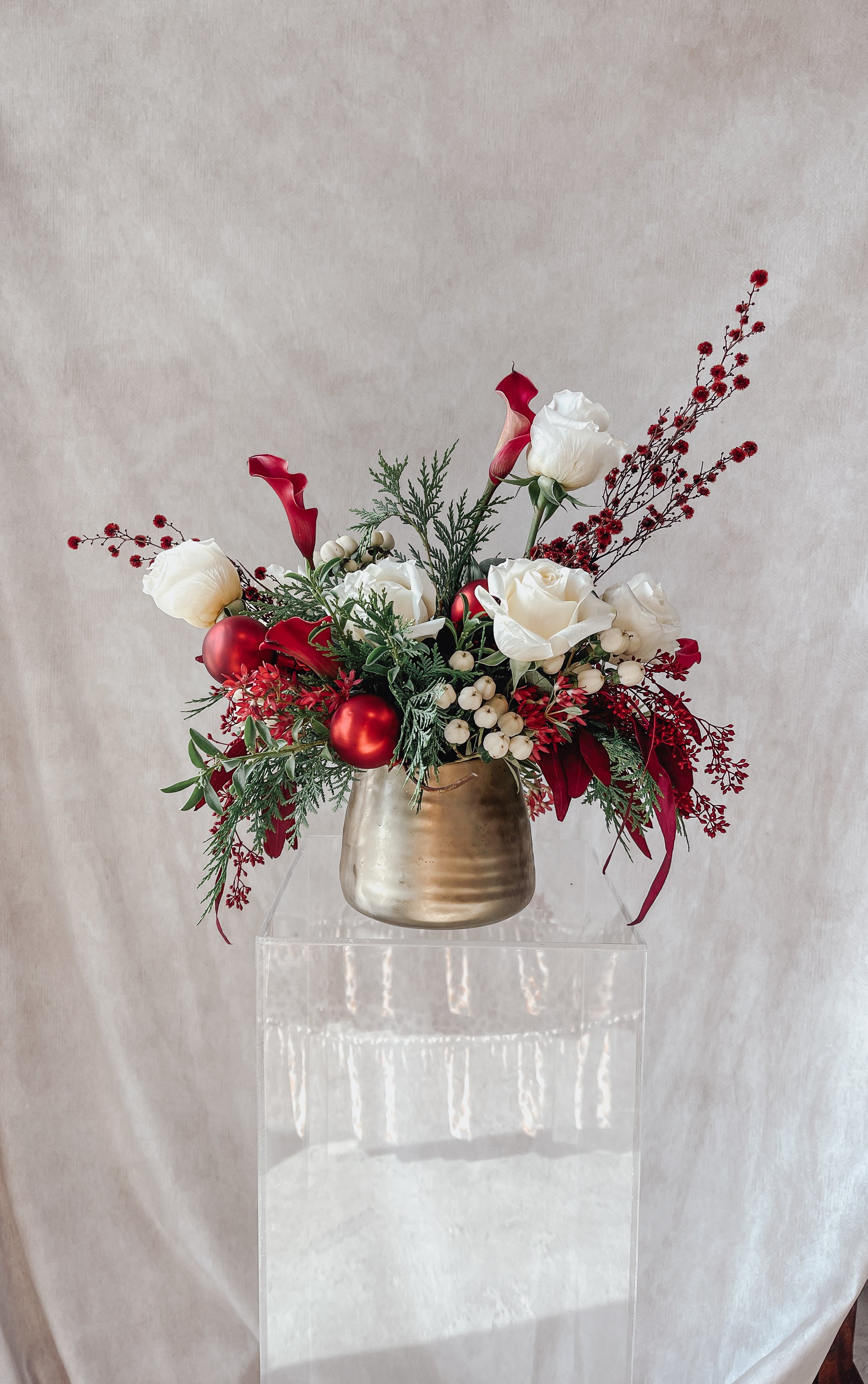 All floral arrangements will be housed in one of our specialty vases, compotes, or ceramic vessels and include a hand-written message.